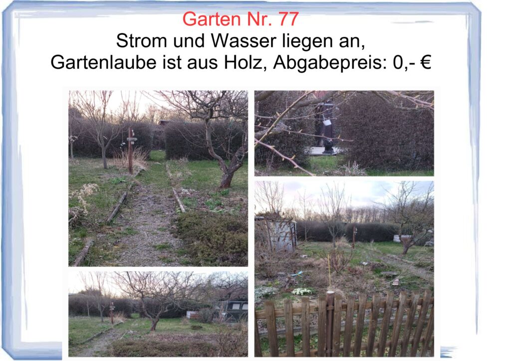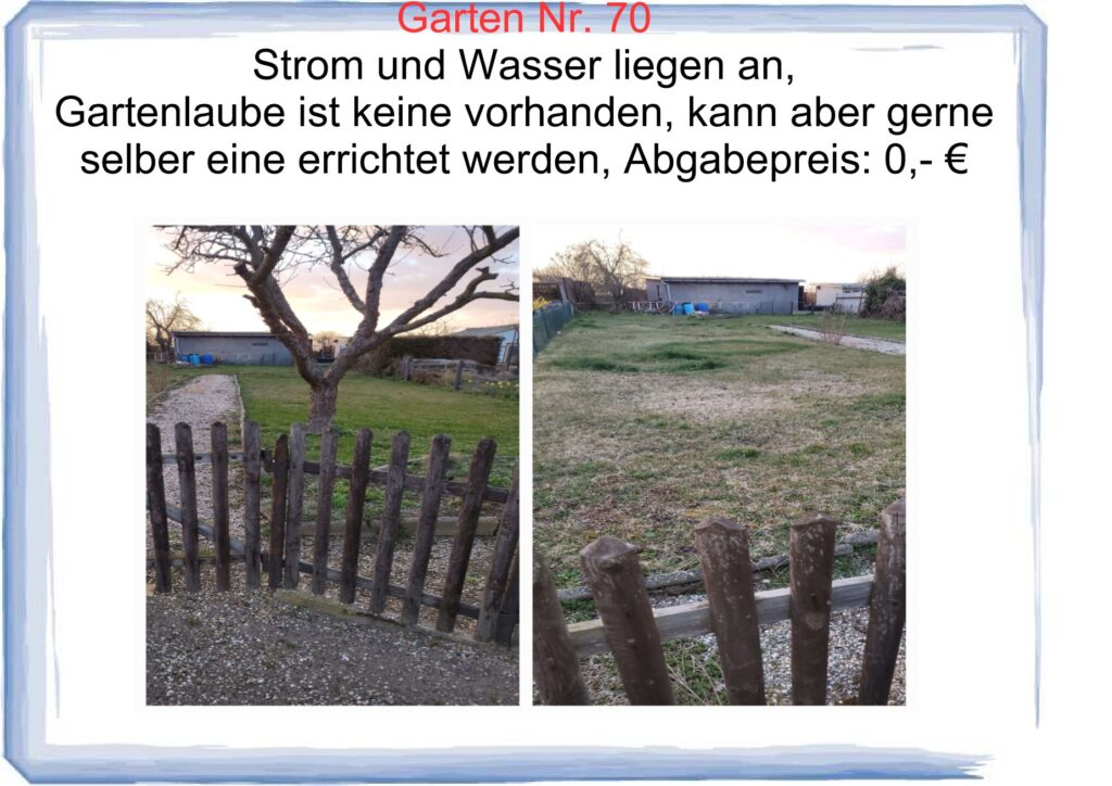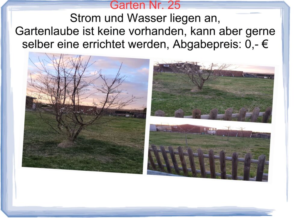 Hier sind einige Gärten für die neue Pächter gesucht werden.