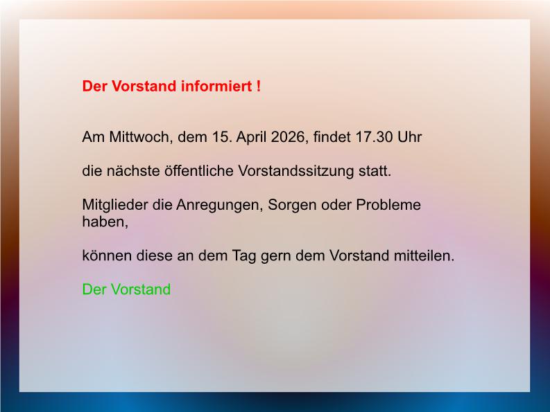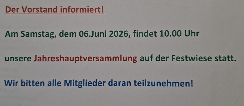 Bei Interesse kann der Vorstand kontaktiert werden unter 0179-6865407.